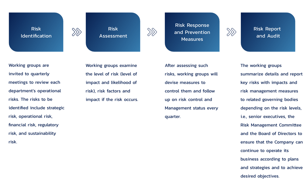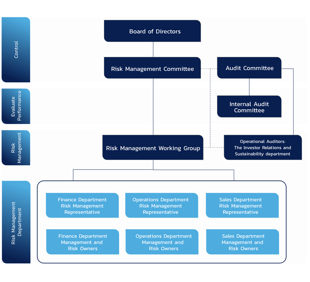 The Company has a risk management policy that covers all internal and external business activities. This may affect business operations both directly and indirectly. The risk management plan has been effectively implemented since strategic planning. Performance Investment decisions for new businesses, including control and monitoring to keep the risk acceptable. Therefore, the scope of authority and responsibilities of the Risk Management Committee are as follows: