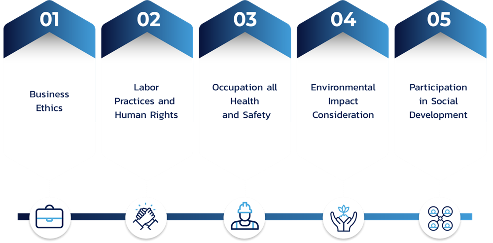 - Suppliers must demonstrate a commitment to social and environmental responsibility, covering human rights, employee and labor care, business ethics, and compliance with environmental laws.